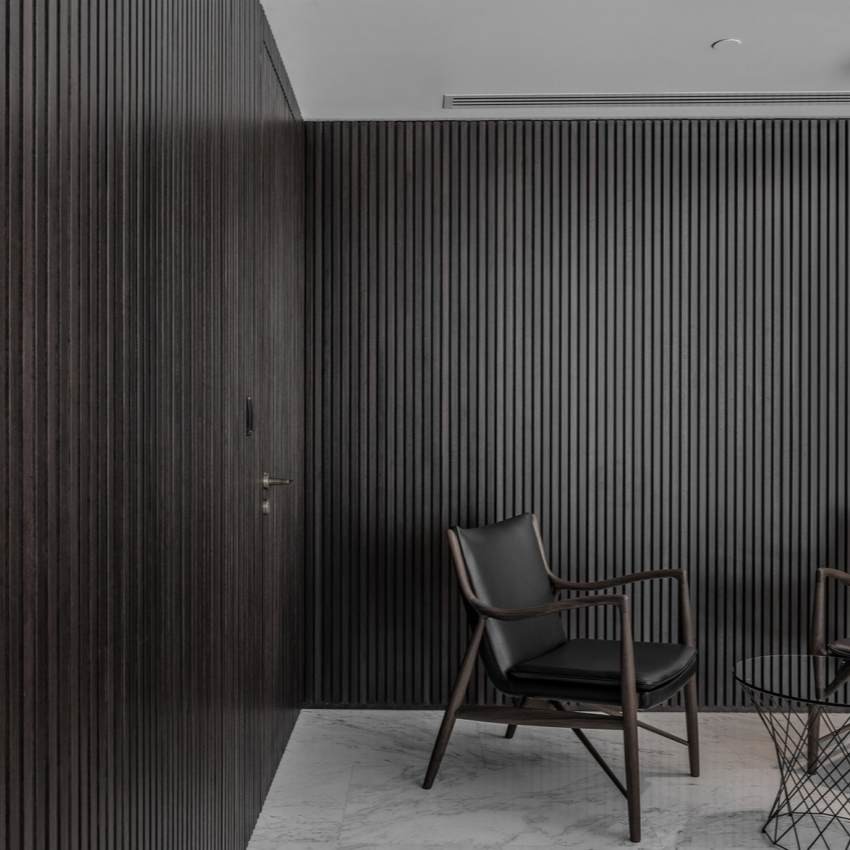 Geluid verspreidt zich als golven, en wanneer deze golven een vast oppervlak raken, stuiteren ze terug in de kamer, wat leidt tot een weerkaatsing.Houten akustische panelen zijn gemaakt van verticale banden van middendichte vezelplaten (MDF)Deze panelen zijn ontworpen om geluidsgolven te absorberen en op te vangen door middel van hun viltondersteuning en houten slaten.effectief verminderen of elimineren van reflecties en weerkaatsing. De grootte van de panelen en de afstand tussen de lijnen kunnen worden aangepast om een aangepaste uitstraling te bereiken.moderne esthetiek die het algemene ontwerp en de visuele aantrekkingskracht van de akoestische panelen verbetert.