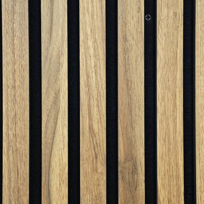 Geluid reist in golven, en wanneer deze golven een vast oppervlak ontmoeten, worden ze weerkaatst in de kamer, waardoor er weerklinking ontstaat.Houten akustische panelen zijn gemaakt van verticale banden van middendichte vezelplaten (MDF)Deze panelen zijn ontworpen om geluid te absorberen en te beheren door een combinatie van vilt en houten slaten.effectief verminderen of elimineren van reflecties en weerkaatsingDe panelen kunnen zowel in grootte als in de afstand tussen de platen worden aangepast aan specifieke ontwerp- en akoestische vereisten.Het gebruik van zwart of grijs achter de lijnen is cruciaal voor het bereiken van een moderneDeze kleurkeuze past niet alleen bij de hedendaagse design-esthetiek, maar verbetert ook de visuele aantrekkingskracht.bijdragen aan een samenhangend en verfijnd interieur.
